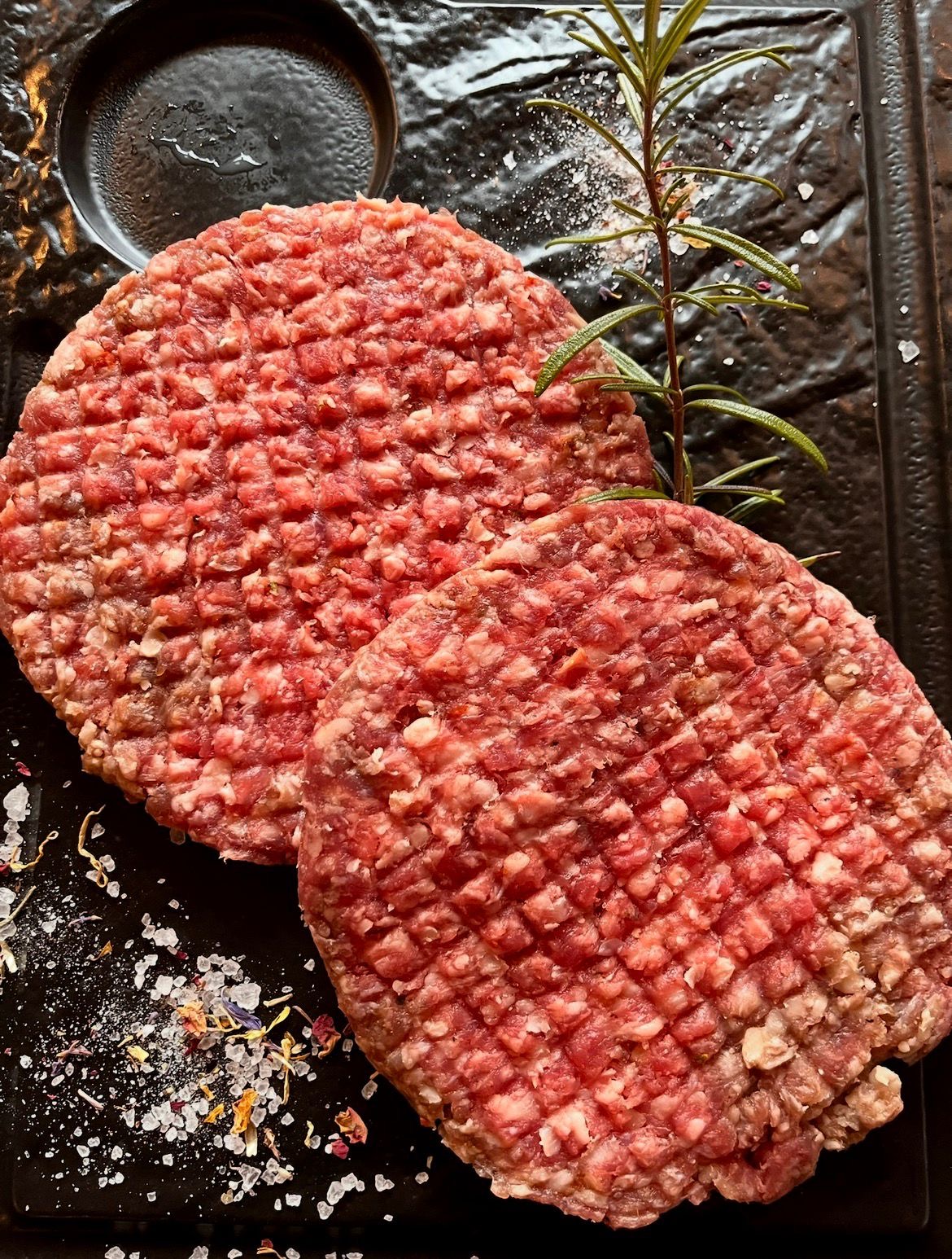 Macinato selezionato di Black Angus, compatto e ricco di gusto, senza additivi.